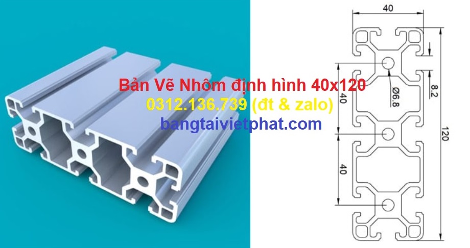 Các nhà sản xuất khác nhau có các mẫu khuôn ép đùn cho nhôm 40×120 khác nhau. Chủ yếu khác nhau về độ dày của cốt nhôm. Dưới đây là bản vẽ tiêu chuẩn của mẫu nhôm định hình 40×120 do Băng Tải Việt Phát để các bạn tham khảo.