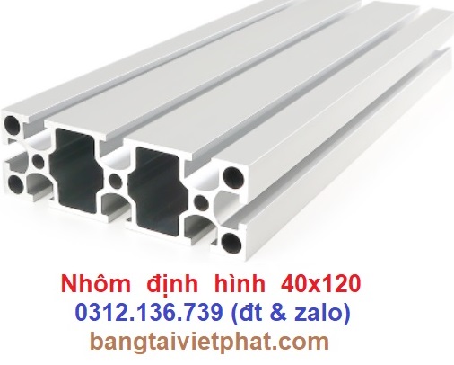 Nhôm định hình 40×120 là mẫu nhôm khá ít gặp và có kiếm vật tư, hay sử dụng làm khung kệ đỡ máy chịu tải cao hoặc khung sườn các hệ thống băng tải lớn yêu cầu sử dụng vật tư nhôm định hình để dễ tương thích với các hệ thiết bị ngoại vi khác.